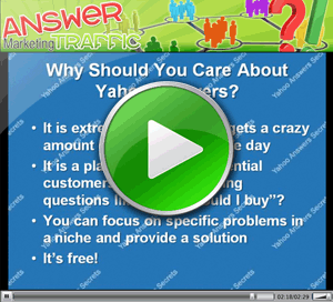 This is why I created Answer Marketing Traffic. It will take you by the hand and show you step-by-step how to profit from Yahoo Answers. This course is for new and advanced marketers alike, as it will take you through the entire process of how to find a market on yahoo answers, and start making sales.