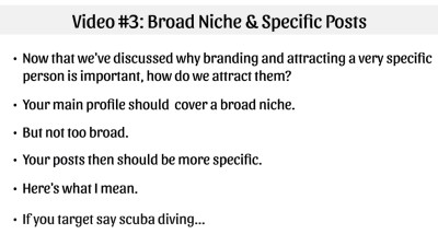 This video course is specifically designed to guide you in the right direction so you can build a massive Instagram fan base, create a loyal following who hang on to your every message, pre-sell your offer and attract new customers and clients.