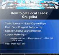 Craigslist is another great avenue to generate local leads, as well as general market specific leads, because a lot of people locally will search their Craigslist city, for items they want to "purchase".