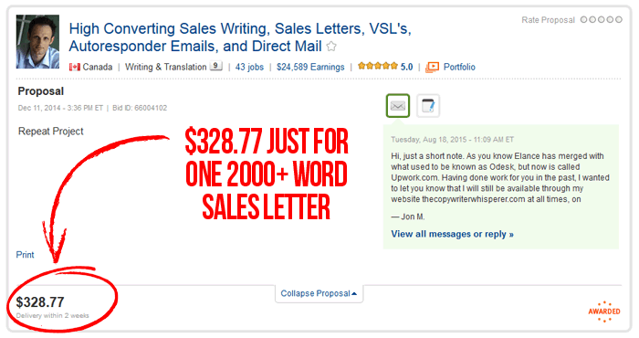 In fact... I Pay my Personal Copywriter $328.77 for a SINGLE Sales Letter Just to Free up my Time and Save Me a Headache!...