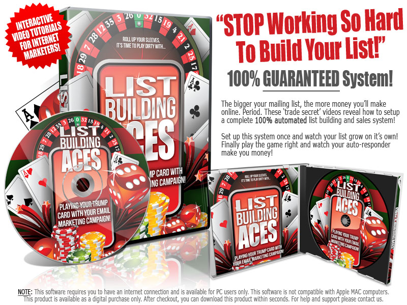 Take advantage of this wonderful opportunity to make money on the internet! If you're serious about setting up your own business and expect to sell frequently, then you simply CANNOT run a successful business without the knowledge found in List Building Aces - just ask the pros (that's if they're not too busy to answer you because they're busy making money using the same system!)